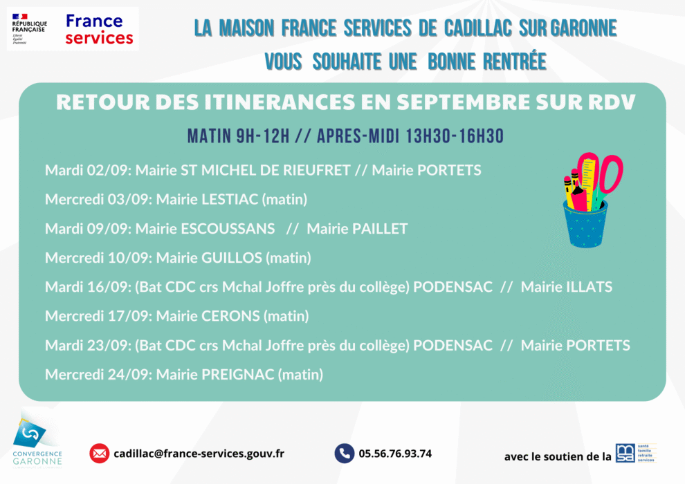 A cette occasion, nous vous accueillons pour des permanences exceptionnelles et des ateliers dans nos locaux à CADILLAC SUR GARONNE